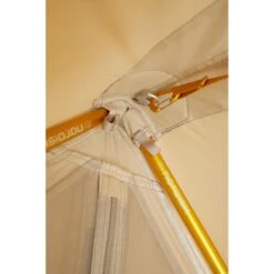 Das Zelt erinnert nur von der Form an alte First-Zelte. Diese neu gedachte Version hingegen kommt ohne Stange im Eingangsbereich aus, sondern besitzt A-Rahmen über jedem Eingang, der dir einen ungehinderten Zutritt zum Zelt erlaubt. Auch entfällt die störende Mittelstange, wodurch du den Innenraum in voller Länge und Breite ausnutzen kannst – zum Beispiel für eine extrabreite Isomatte!