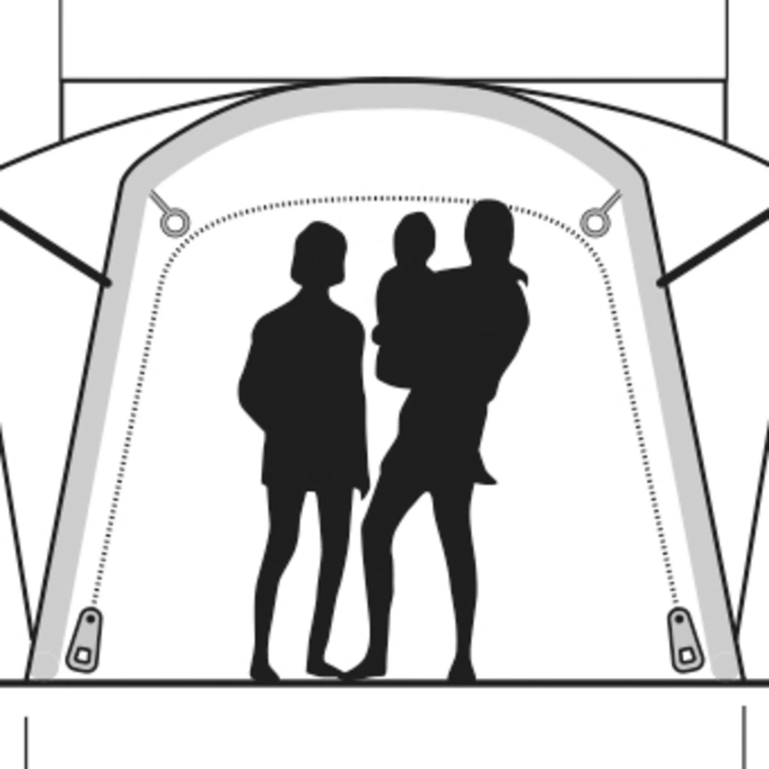 Im Vorzelt ist genügend Platz, um einen Tisch und Stühle aufzustellen oder deine Outdoorküche aufzubauen. Auch als Lagerplatz für Fahrräder und Ausrüstung eignet es sich prima. So hast du mehr Platz im Van und kannst dich frei bewegen. Alternativ kannst du das separat erhältliche Innenzelt einhängen, um mehr Schlafplätze zu schaffen.