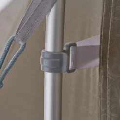 • Die Innenzelttür kann aufgerollt mit einem Knebelverschluss befestigt werden