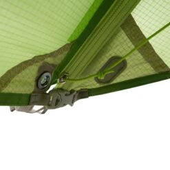 Der Eingang kann mit zwei (separat erhältlichen) Tarpstangen zu einem Sonnensegel aufgestellt werden und vergrößert damit die ohnehin schon großzügig bemessene Apsis. Soll es noch luftiger werden, kannst du den Eingang und die Seitenteile bis zum ersten Gestängebogen aufrollen. Du erreichst damit maximale Belüftung und einen ungestörten Zugang zum Zelt.